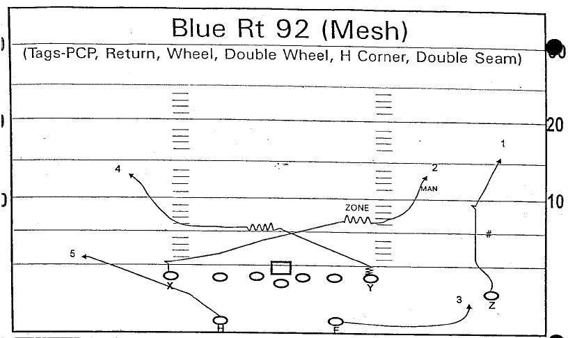 I don’t want to crap on the likes of Graham Harrell and Cliff Kingsbury, but Mike Leach has used this play to roll up gobs of deep passing touchdowns with some less-than-stellar quarterbacks. It takes some time to perfect, but it is the most effective deep passing play in college football. Pick a guy, look at his defender and throw it to where he is not. Simple.